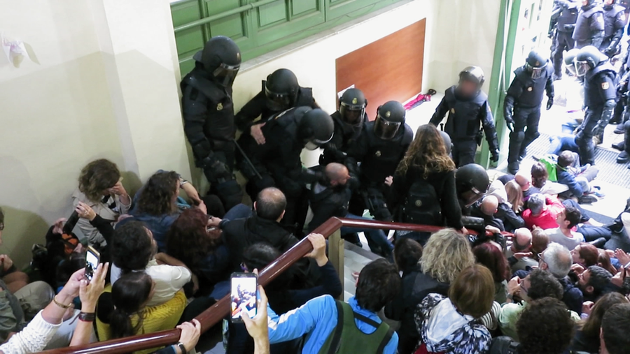 長久以來,加泰隆尼亞自治區持續有獨立於西班牙、自成一國的聲音。在加泰隆尼亞議會的號召下,民眾就獨立與否舉行公投,但此舉卻被西班牙政府認定違法,下令關閉投票所並沒收投票箱,當投票箱抵達後,警察也隨之出現,面對警察來勢洶洶,人們主動坐在地上,大聲地說「我們相信和平」和「我們會投票」,警察朝著人群走了過來,試圖強行帶走抗議者。