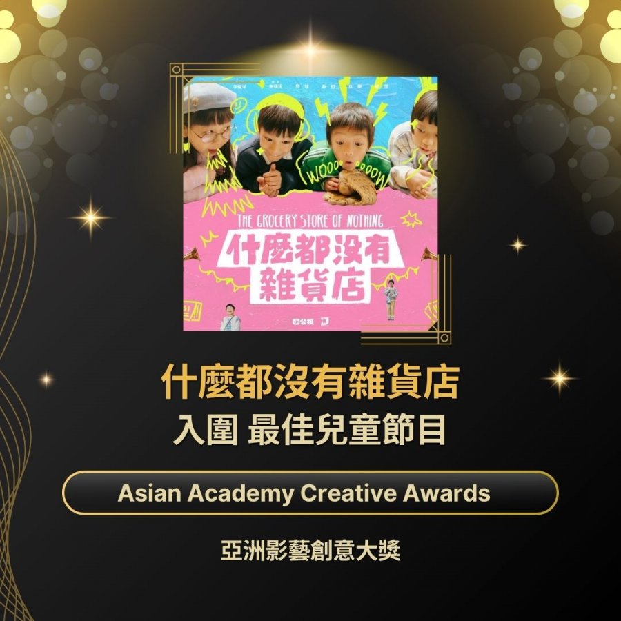 而改編自兒童文學作家王宇清同名作品,小公視兒童情境喜劇《什麼都沒有雜貨店》,溫馨幽默呈現孩童內心世界,繼入圍本屆金鐘戲劇類節目創新獎、最佳潛力新人獎(斯拉-陳馨妃)後,又入圍AACA最佳兒童節目。由藝人視網膜領軍,解密暗黑校園情境的推理實境節目《成仁高中偵探社》也入圍AACA「最佳遊戲或益智節目」。