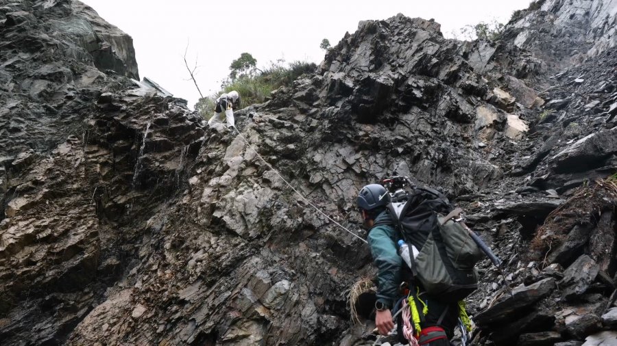 《我們的島》攝影記者陳添寶、陳慶鍾與文字記者林書帆踏上此次行程,團隊除了要翻越稜線、陡攀、腰繞、下切河谷,有些地區還得依賴繩索垂降,充滿碎石的崩塌地非常濕滑。在經歷過大規模崩塌及大水的沖刷,地形地貌已有劇烈改變,無法完全仰賴地圖,必須依靠現場的判斷,在嚮導、協作等登山專家的專業協助下,《我們的島》團隊才得以順利抵達現場,完成拍攝任務。