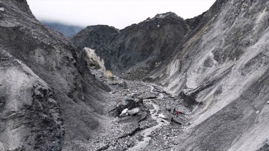 嚮導張光承是去年10月第一批首度徒步抵達堰塞湖的特遣隊成員,他觀察到兩個月來,「地形地貌仍在持續變化中,溪流逐漸侵蝕出階梯狀的高低差,左右擺盪切割出全新的流向」。